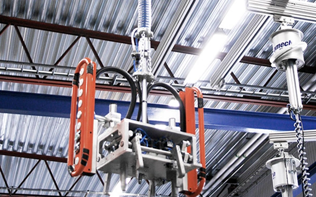 Mechlight Pro ™ se instala de manera más ventajosa en un sistema de grúa o en una grúa giratoria. Una herramienta de pinza neumática y unidades de control se integran fácilmente con el adaptador de herramienta. ¡Incluso una simple herramienta mecánica ofrece un manejo fácil y ergonómico!